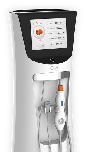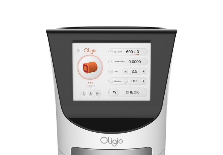 Oligio оборудован эргономичным наконечником с вибрацией, который снижает болевые ощущения, а интеллектуальная система охлаждения газом (CO) поддерживает безопасную температуру кожи во время всей процедуры и минимизирует риск осложнений.