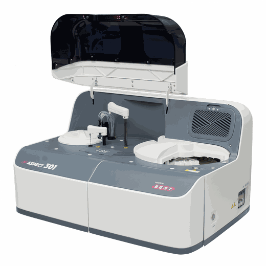 ASPECT 301 — автоматический биохимический анализатор, разработанный для лабораторий с небольшим и средним потоком исследований, включая небольшие экспресс-лаборатории и ЛПУ с нагрузкой до 150–250 образцов в день. Модель ориентирована на стабильную работу, быстрый запуск и получение первого результата в течение 8–12 минут после старта анализа. Анализатор подходит для выполнения базовых и расширенных биохимических исследований в условиях ограниченного пространств.